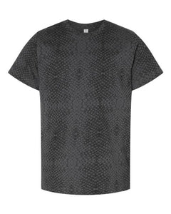 All Blackout colors, Black Leopard, Blended White, Granite Heather, Storm Camo, & all Vintage colors are 60/40 combed ring-spun cotton/polyester